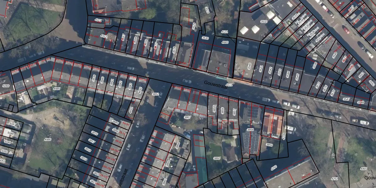Gouwstraat 54-A is gelegen op kadastraal perceel CLS00E3867. Deze kadastrale aanduiding is uniek en wordt gebruikt door het Kadaster om eigendomsrechten en andere zakelijke rechten vast te leggen. Het perceel maakt onderdeel uit van de kadastrale gemeente Charlois.