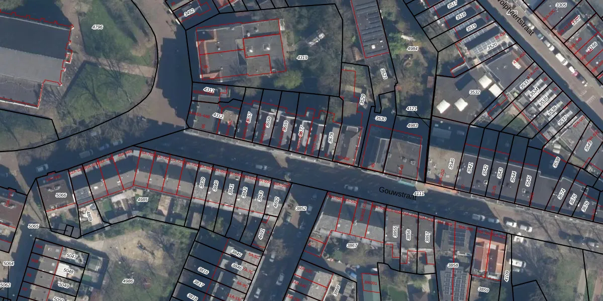 Gouwstraat 55-B is gelegen op kadastraal perceel CLS00E3677. Deze kadastrale aanduiding is uniek en wordt gebruikt door het Kadaster om eigendomsrechten en andere zakelijke rechten vast te leggen. Het perceel maakt onderdeel uit van de kadastrale gemeente Charlois.