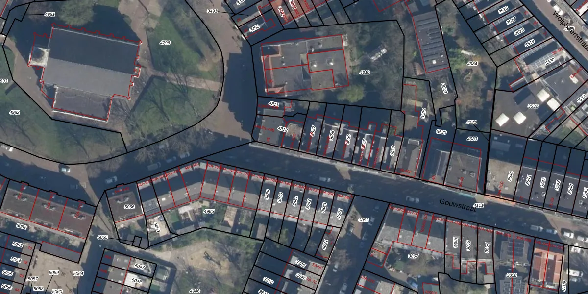 Gouwstraat 63-C is gelegen op kadastraal perceel CLS00E4312. Deze kadastrale aanduiding is uniek en wordt gebruikt door het Kadaster om eigendomsrechten en andere zakelijke rechten vast te leggen. Het perceel maakt onderdeel uit van de kadastrale gemeente Charlois.