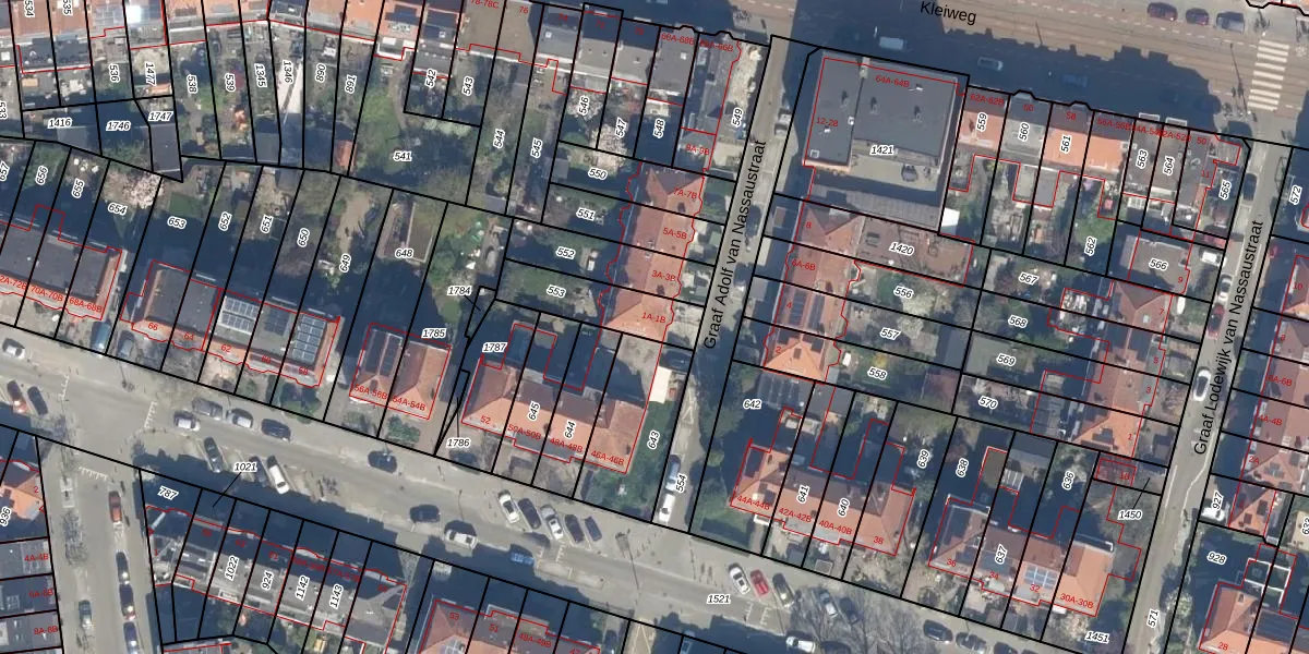 Graaf Adolf van Nassaustraat 1-A is gelegen op kadastraal perceel HLG03H553. Deze kadastrale aanduiding is uniek en wordt gebruikt door het Kadaster om eigendomsrechten en andere zakelijke rechten vast te leggen. Het perceel maakt onderdeel uit van de kadastrale gemeente Hillegersberg.