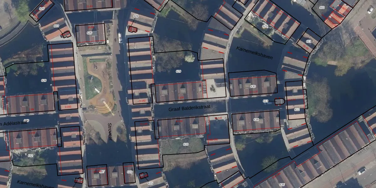 Graaf Balderikstraat 13 is gelegen op kadastraal perceel RTD08AD629. Deze kadastrale aanduiding is uniek en wordt gebruikt door het Kadaster om eigendomsrechten en andere zakelijke rechten vast te leggen. Het perceel maakt onderdeel uit van de kadastrale gemeente Rotterdam.