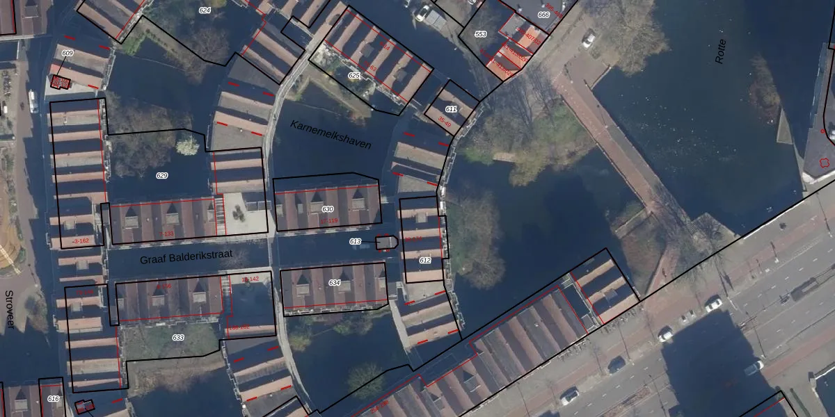 Graaf Balderikstraat 141 is gelegen op kadastraal perceel RTD08AD612. Deze kadastrale aanduiding is uniek en wordt gebruikt door het Kadaster om eigendomsrechten en andere zakelijke rechten vast te leggen. Het perceel maakt onderdeel uit van de kadastrale gemeente Rotterdam.