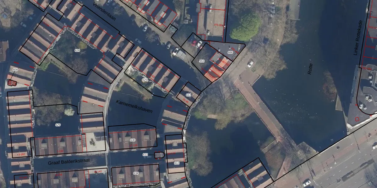 Het perceel waarop het adres ligt is RTD08-AD-611. De afkorting 'RTD08' staat voor kadastrale gemeente Rotterdam. Het perceel is 93 m² groot. Dat is kleiner dan de gemiddelde perceeloppervlakte in Rotterdam, dat op 689,2 m² ligt. Het grootste perceel in de kadastrale gemeente is 4,0 ha. Het kleinste perceel heeft een oppervlakte van 0 m². Op het perceel zijn 5 adressen aanwezig. In de Basisregistratie Kadaster (BRK) werden de grenzen van het perceel geregistreerd op 10-07-2003.
