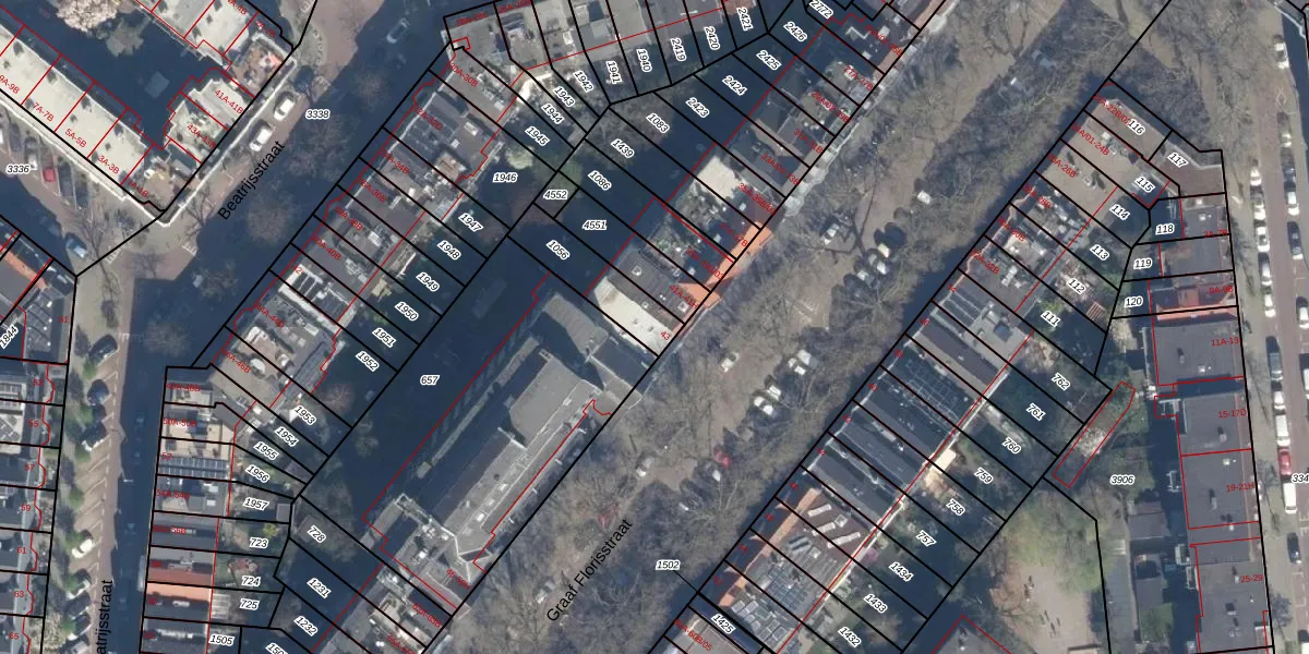 Het perceel waarop Graaf Florisstraat 43 staat heeft een oppervlakte van 187 m². Dit is een middelgroot perceel. De perceeloppervlakte wordt geregistreerd door het Kadaster. Gedetailleerde informatie over de maten van dit perceel kunt u vinden in het rapport Kadastrale kaart met maatvoering van Graaf Florisstraat 43.