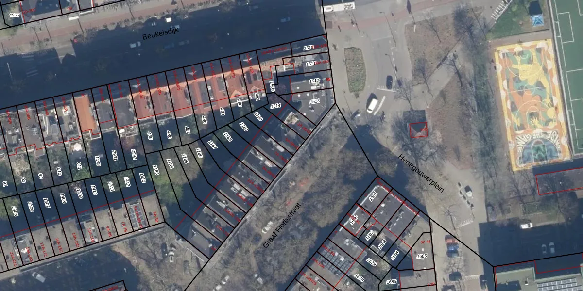 Het perceel waarop het adres ligt is DHV00-I-1190. De afkorting 'DHV00' staat voor kadastrale gemeente Delfshaven. Het perceel is 129 m² groot. Dat is kleiner dan de gemiddelde perceeloppervlakte in Delfshaven, dat op 628,61 m² ligt. Het kleinste perceel in de kadastrale gemeente is 0 m² groot. De grootste perceeloppervlakte is 22,2 ha. Op het perceel liggen in totaal 3 adressen. In de Basisregistratie Kadaster (BRK) werden de grenzen van het perceel geregistreerd op 13-03-2003.