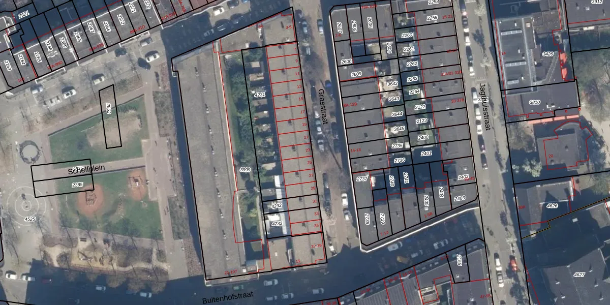 Het perceel waarop Grasstraat 23 staat heeft een oppervlakte van 942 m². Dit is een groot perceel. De perceeloppervlakte wordt geregistreerd door het Kadaster. Gedetailleerde informatie over de maten van dit perceel kunt u vinden in het rapport Kadastrale kaart met maatvoering van Grasstraat 23.