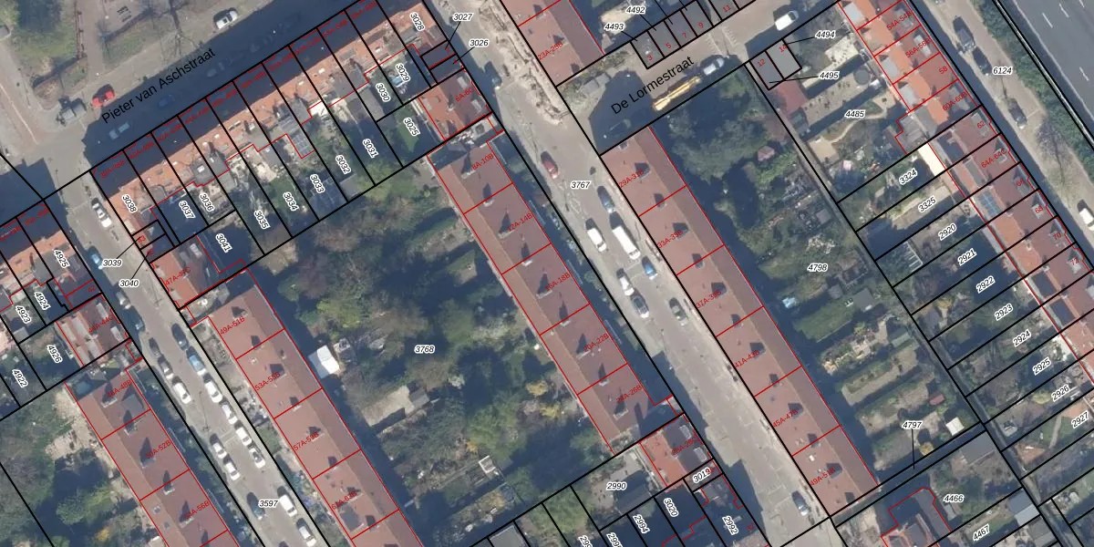 Het perceel waarop het adres ligt is OVS00-C-3768. De afkorting 'OVS00' staat voor kadastrale gemeente Overschie. De gemiddelde perceeloppervlakte in de kadastrale gemeente Overschie is 2520,78 m². Dit perceel is met zijn 4461 m² dus groter dan gemiddeld. Het kleinste perceel in de kadastrale gemeente is 0 m² groot. De grootste perceeloppervlakte is 80,2 ha. Er zijn 40 adressen aanwezig op het perceel. In de Basisregistratie Kadaster (BRK) werden de grenzen van het perceel geregistreerd op 25-11-2002.