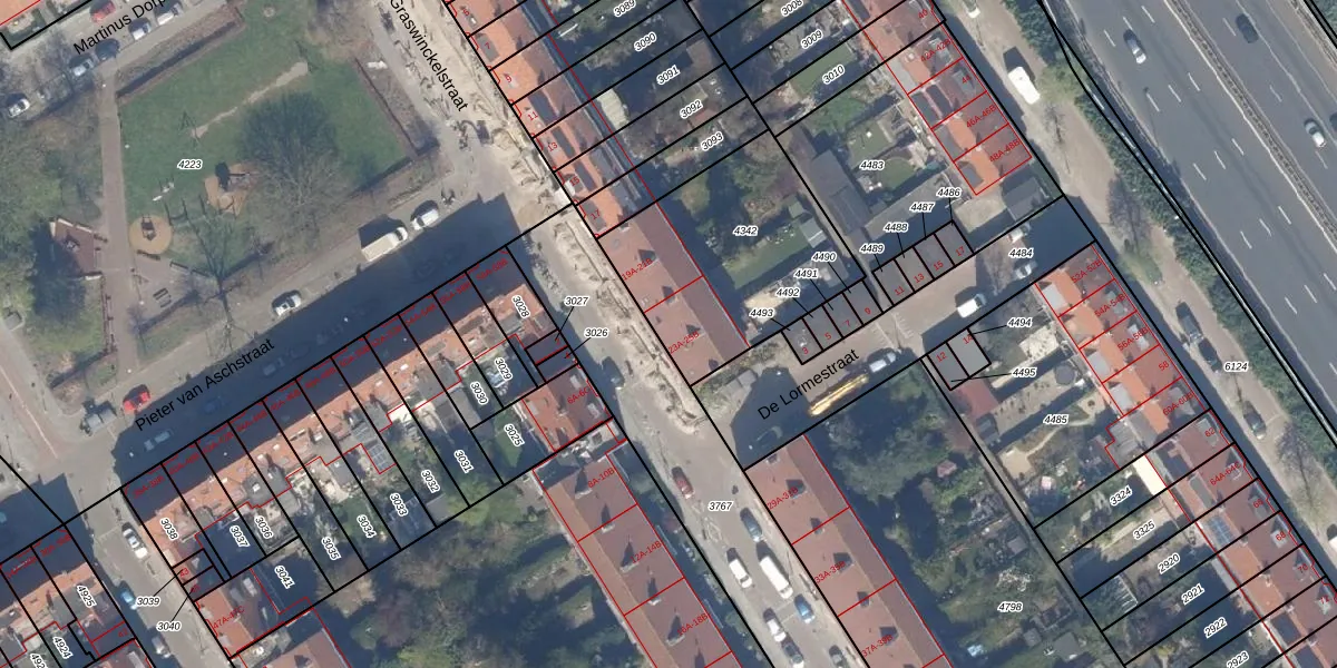 Het perceel waarop Graswinckelstraat 23-B staat heeft een oppervlakte van 824 m². Dit is een groot perceel. De perceeloppervlakte wordt geregistreerd door het Kadaster. Gedetailleerde informatie over de maten van dit perceel kunt u vinden in het rapport Kadastrale kaart met maatvoering van Graswinckelstraat 23-B.