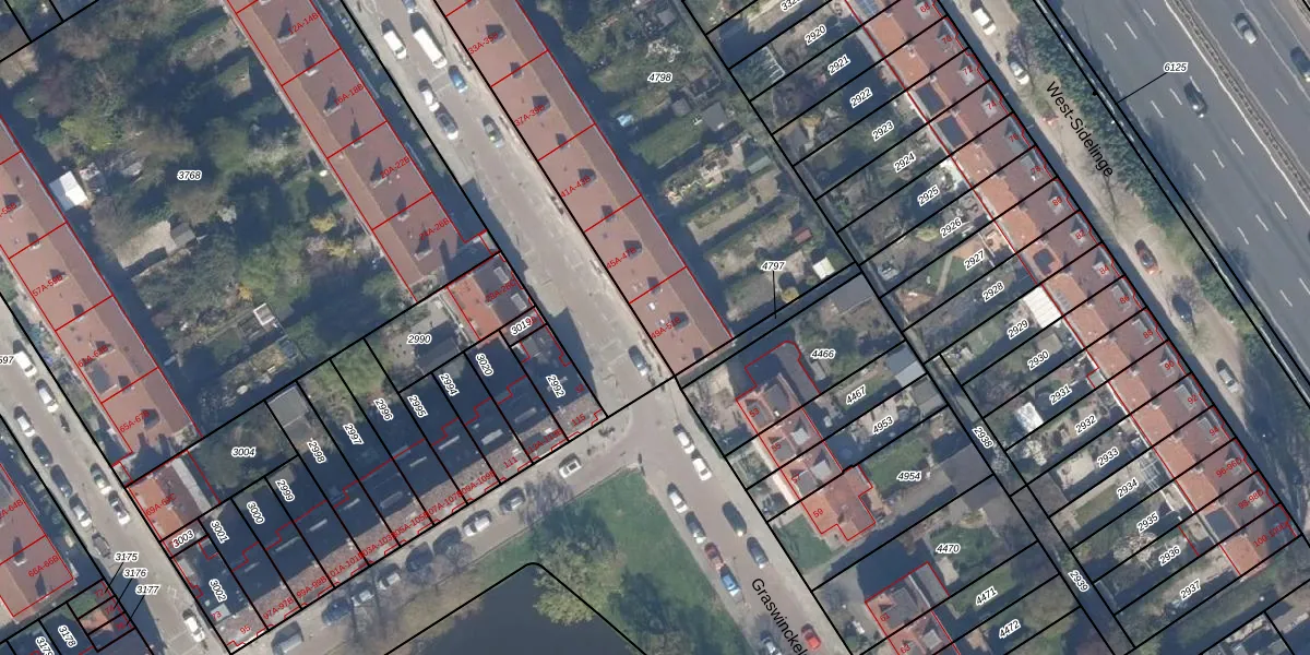 Het perceel waarop Graswinckelstraat 49-B staat heeft een oppervlakte van 2527 m². Dit is een zeer groot perceel. De perceeloppervlakte wordt geregistreerd door het Kadaster. Gedetailleerde informatie over de maten van dit perceel kunt u vinden in het rapport Kadastrale kaart met maatvoering van Graswinckelstraat 49-B.