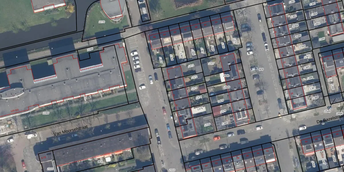 Gebruik de zoekbalk of klik op een perceel voor informatie over de adressen binnen dit perceel.