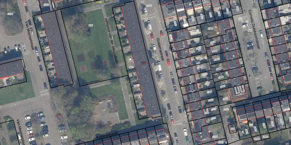 Het perceel waarop Gratamastraat 77 staat heeft een oppervlakte van 1242 m². Dit is een zeer groot perceel. De perceeloppervlakte wordt geregistreerd door het Kadaster. Gedetailleerde informatie over de maten van dit perceel kunt u vinden in het rapport Kadastrale kaart met maatvoering van Gratamastraat 77.