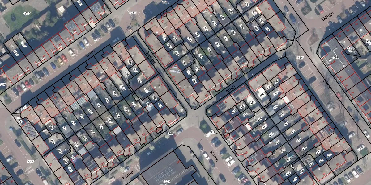 Gebruik de zoekbalk of klik op een perceel voor informatie over de adressen binnen dit perceel.