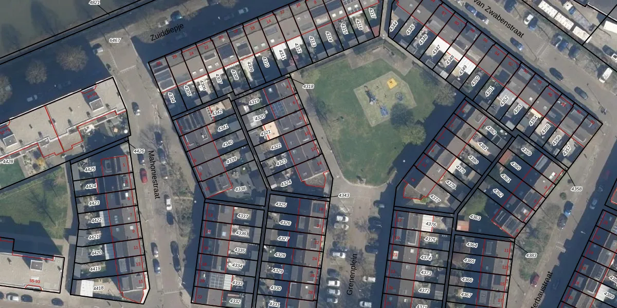 Gebruik de zoekbalk of klik op een perceel voor informatie over de adressen binnen dit perceel.