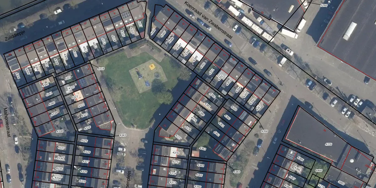 Gebruik de zoekbalk of klik op een perceel voor informatie over de adressen binnen dit perceel.