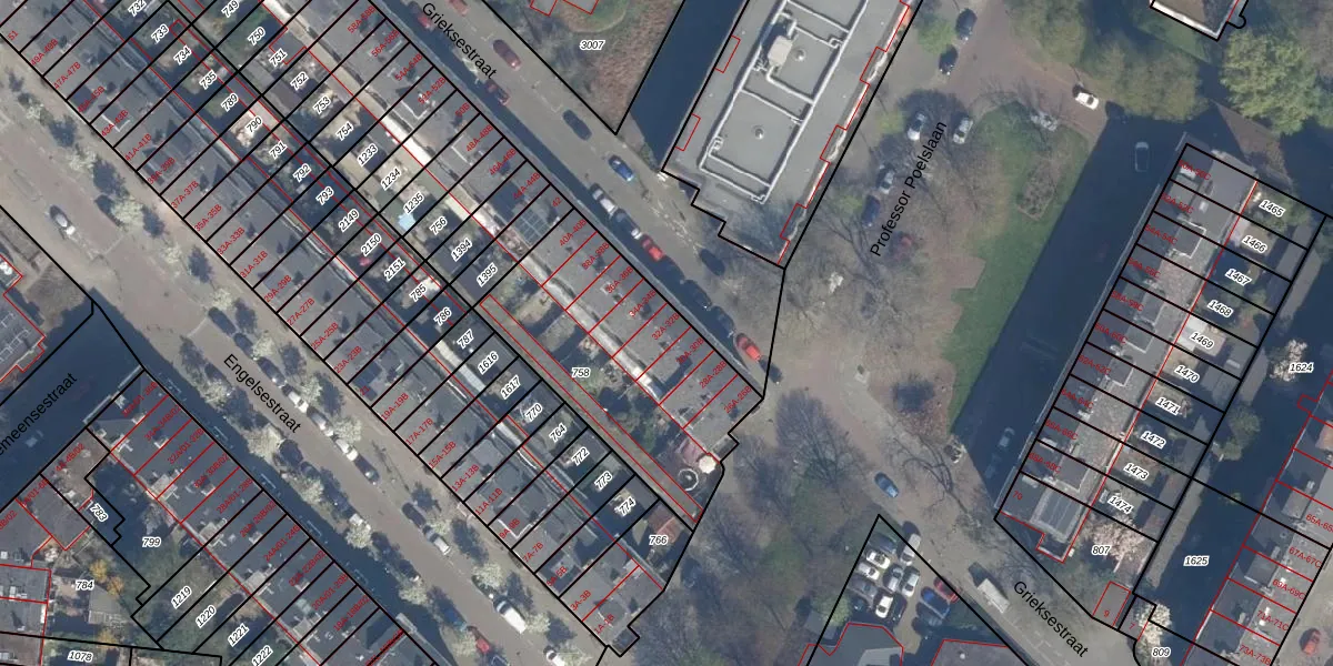 Grieksestraat 32-B is gelegen op kadastraal perceel RTD10AA758. Deze kadastrale aanduiding is uniek en wordt gebruikt door het Kadaster om eigendomsrechten en andere zakelijke rechten vast te leggen. Het perceel maakt onderdeel uit van de kadastrale gemeente Rotterdam.