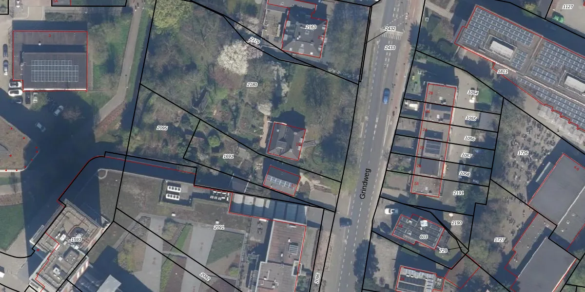 Het perceel waarop Grindweg 19 staat heeft een oppervlakte van 2462 m². Dit is een zeer groot perceel. De perceeloppervlakte wordt geregistreerd door het Kadaster. Gedetailleerde informatie over de maten van dit perceel kunt u vinden in het rapport Kadastrale kaart met maatvoering van Grindweg 19.