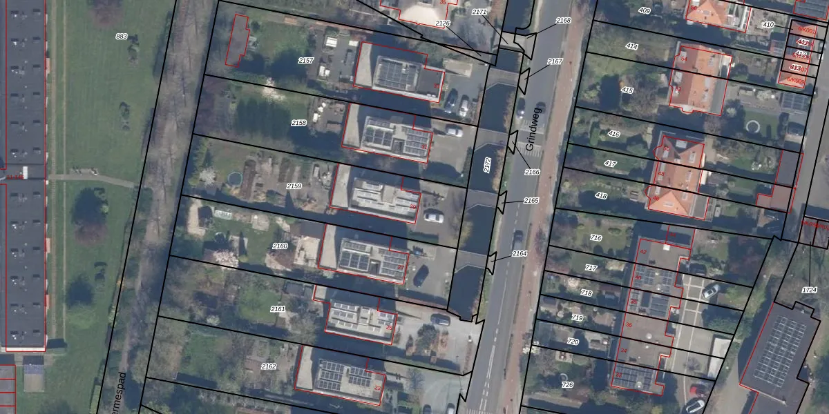 Het perceel waarop Grindweg 29 staat heeft een oppervlakte van 1004 m². Dit is een zeer groot perceel. De perceeloppervlakte wordt geregistreerd door het Kadaster. Gedetailleerde informatie over de maten van dit perceel kunt u vinden in het rapport Kadastrale kaart met maatvoering van Grindweg 29.