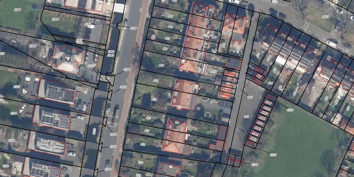 Het perceel waarop Grindweg 54 staat heeft een oppervlakte van 445 m². Dit is een groot perceel. De perceeloppervlakte wordt geregistreerd door het Kadaster. Gedetailleerde informatie over de maten van dit perceel kunt u vinden in het rapport Kadastrale kaart met maatvoering van Grindweg 54.