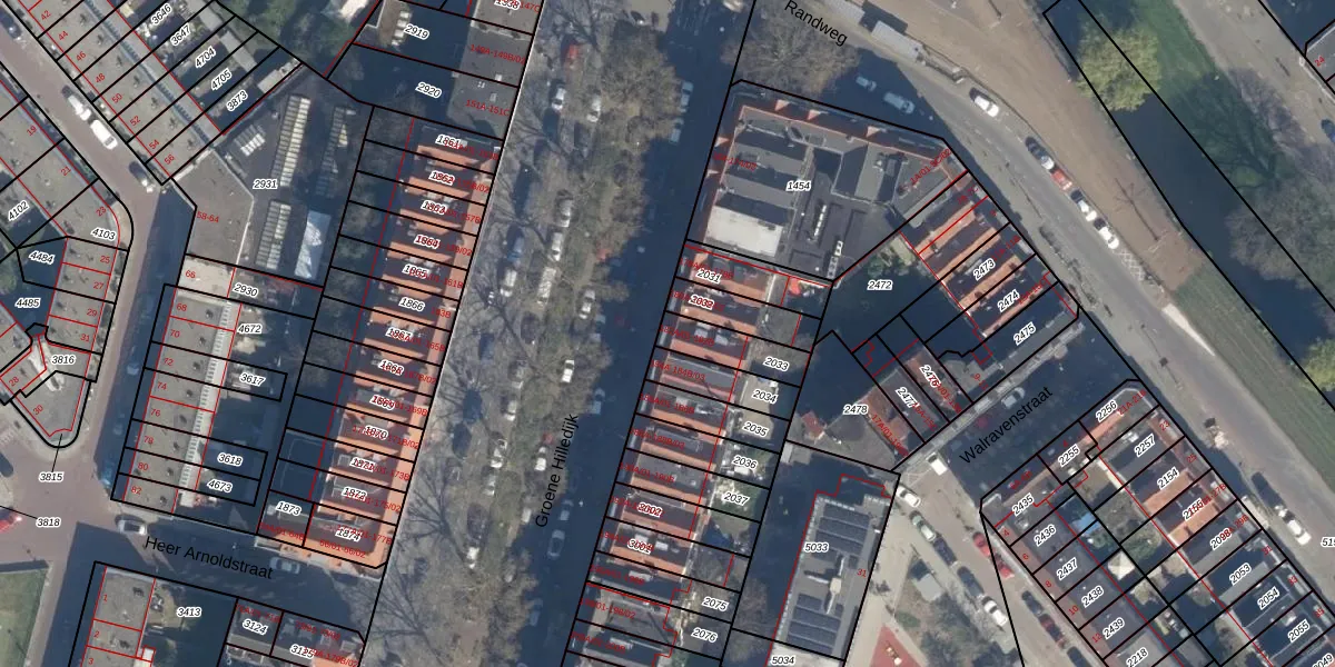 Groene Hilledijk 182-B is gelegen op kadastraal perceel CLS00F2033. Deze kadastrale aanduiding is uniek en wordt gebruikt door het Kadaster om eigendomsrechten en andere zakelijke rechten vast te leggen. Het perceel maakt onderdeel uit van de kadastrale gemeente Charlois.
