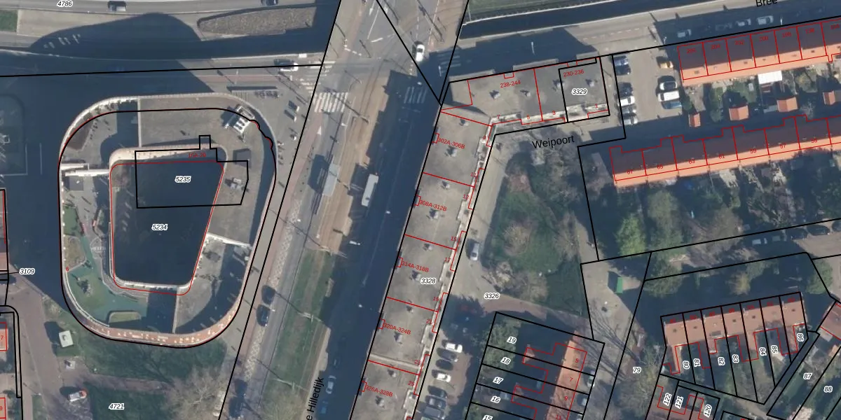 Groene Hilledijk 312-B is gelegen op kadastraal perceel CLS00F3328. Deze kadastrale aanduiding is uniek en wordt gebruikt door het Kadaster om eigendomsrechten en andere zakelijke rechten vast te leggen. Het perceel maakt onderdeel uit van de kadastrale gemeente Charlois.