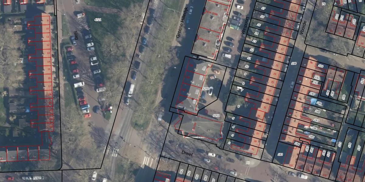 Het perceel waarop Groene Hilledijk 338 staat heeft een oppervlakte van 639 m². Dit is een groot perceel. De perceeloppervlakte wordt geregistreerd door het Kadaster. Gedetailleerde informatie over de maten van dit perceel kunt u vinden in het rapport Kadastrale kaart met maatvoering van Groene Hilledijk 338.