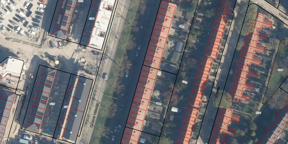 Groene Hilledijk 428-A is gelegen op kadastraal perceel CLS00F2802. Deze kadastrale aanduiding is uniek en wordt gebruikt door het Kadaster om eigendomsrechten en andere zakelijke rechten vast te leggen. Het perceel maakt onderdeel uit van de kadastrale gemeente Charlois.