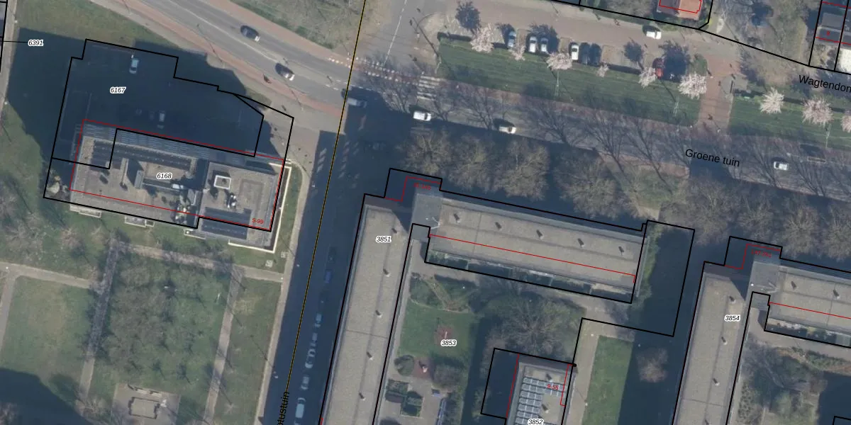 Het perceel waarop Groene tuin 121 staat heeft een oppervlakte van 1802 m². Dit is een zeer groot perceel. De perceeloppervlakte wordt geregistreerd door het Kadaster. Gedetailleerde informatie over de maten van dit perceel kunt u vinden in het rapport Kadastrale kaart met maatvoering van Groene tuin 121.