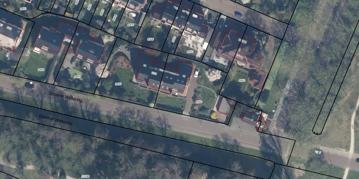 Groene Wetering 7 is gelegen op kadastraal perceel KLG00D8560. Deze kadastrale aanduiding is uniek en wordt gebruikt door het Kadaster om eigendomsrechten en andere zakelijke rechten vast te leggen. Het perceel maakt onderdeel uit van de kadastrale gemeente Kralingen.