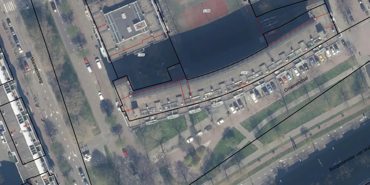 Het perceel waarop het adres ligt is RTD04-AF-1167. De afkorting 'RTD04' staat voor kadastrale gemeente Rotterdam. Het perceel is met 2042 m² relatief groot. Het gemiddelde ligt in de kadastrale gemeente Rotterdam op 1239,97 m². Het grootste perceel in de kadastrale gemeente is 17,3 ha. Het kleinste perceel heeft een oppervlakte van 0 m². Er zijn 167 adressen aanwezig op het perceel. De laatste wijziging in het de Basisregistratie Kadaster (BRK) was op 09-01-2003.