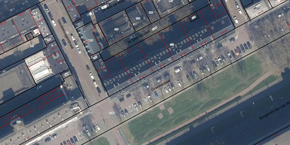 Groenendaal 39-D is gelegen op kadastraal perceel RTD04AF273. Deze kadastrale aanduiding is uniek en wordt gebruikt door het Kadaster om eigendomsrechten en andere zakelijke rechten vast te leggen. Het perceel maakt onderdeel uit van de kadastrale gemeente Rotterdam.