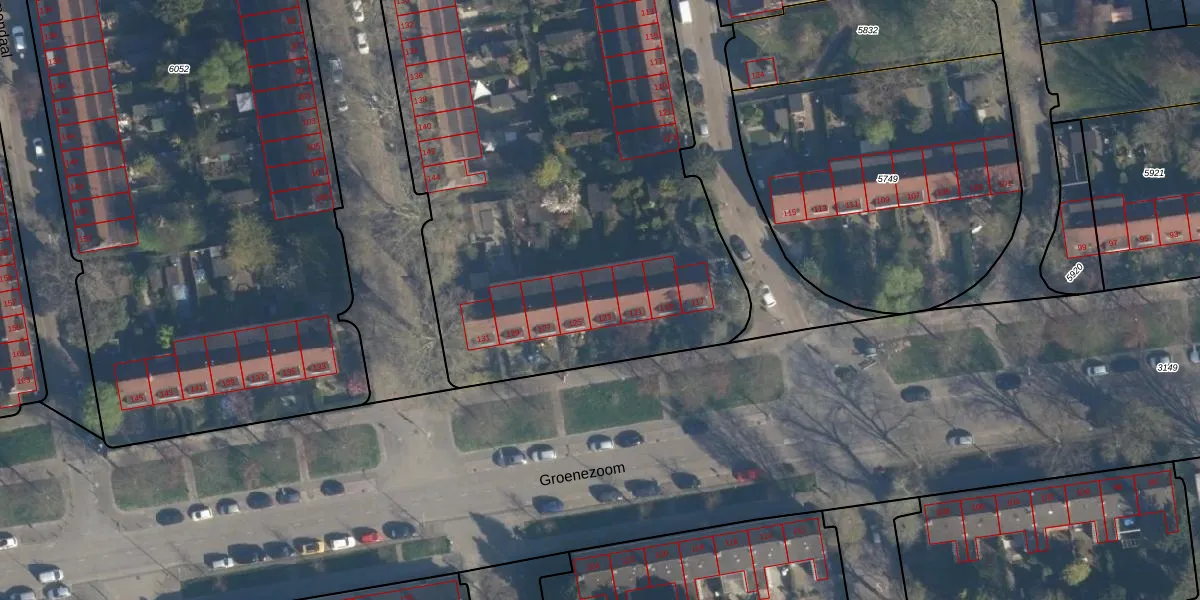 Het perceel waarop Groenezoom 123 staat heeft een oppervlakte van 6990 m². Dit is een zeer groot perceel. De perceeloppervlakte wordt geregistreerd door het Kadaster. Gedetailleerde informatie over de maten van dit perceel kunt u vinden in het rapport Kadastrale kaart met maatvoering van Groenezoom 123.