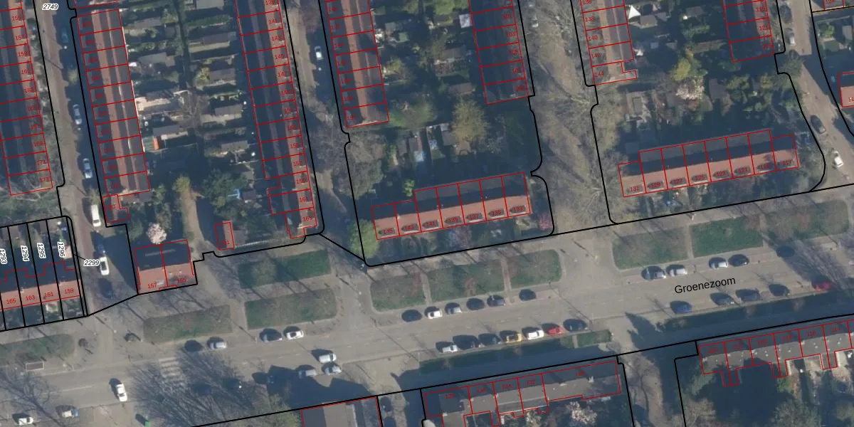 Het perceel waarop Groenezoom 141 staat heeft een oppervlakte van 6272 m². Dit is een zeer groot perceel. De perceeloppervlakte wordt geregistreerd door het Kadaster. Gedetailleerde informatie over de maten van dit perceel kunt u vinden in het rapport Kadastrale kaart met maatvoering van Groenezoom 141.