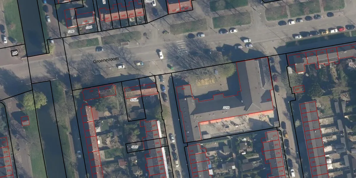 Het perceel waarop Groenezoom 156 staat heeft een oppervlakte van 2202 m². Dit is een zeer groot perceel. De perceeloppervlakte wordt geregistreerd door het Kadaster. Gedetailleerde informatie over de maten van dit perceel kunt u vinden in het rapport Kadastrale kaart met maatvoering van Groenezoom 156.