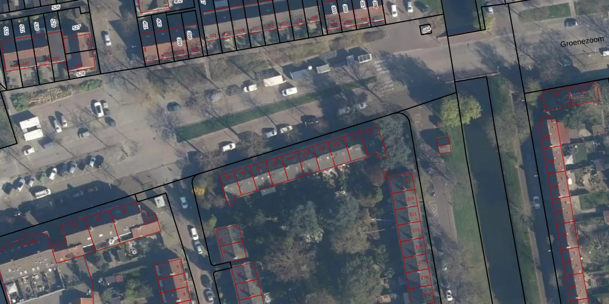Het perceel waarop Groenezoom 184 staat heeft een oppervlakte van 1,4 ha. Dit is een zeer groot perceel. De perceeloppervlakte wordt geregistreerd door het Kadaster. Gedetailleerde informatie over de maten van dit perceel kunt u vinden in het rapport Kadastrale kaart met maatvoering van Groenezoom 184.