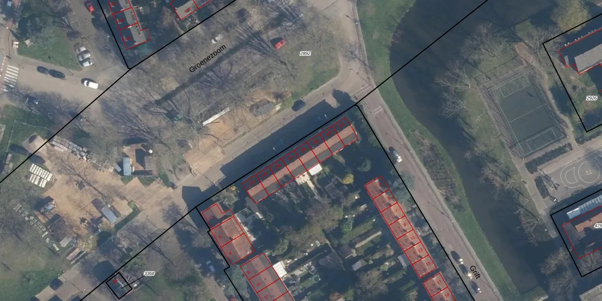 Het perceel waarop Groenezoom 288 staat heeft een oppervlakte van 1,0 ha. Dit is een zeer groot perceel. De perceeloppervlakte wordt geregistreerd door het Kadaster. Gedetailleerde informatie over de maten van dit perceel kunt u vinden in het rapport Kadastrale kaart met maatvoering van Groenezoom 288.