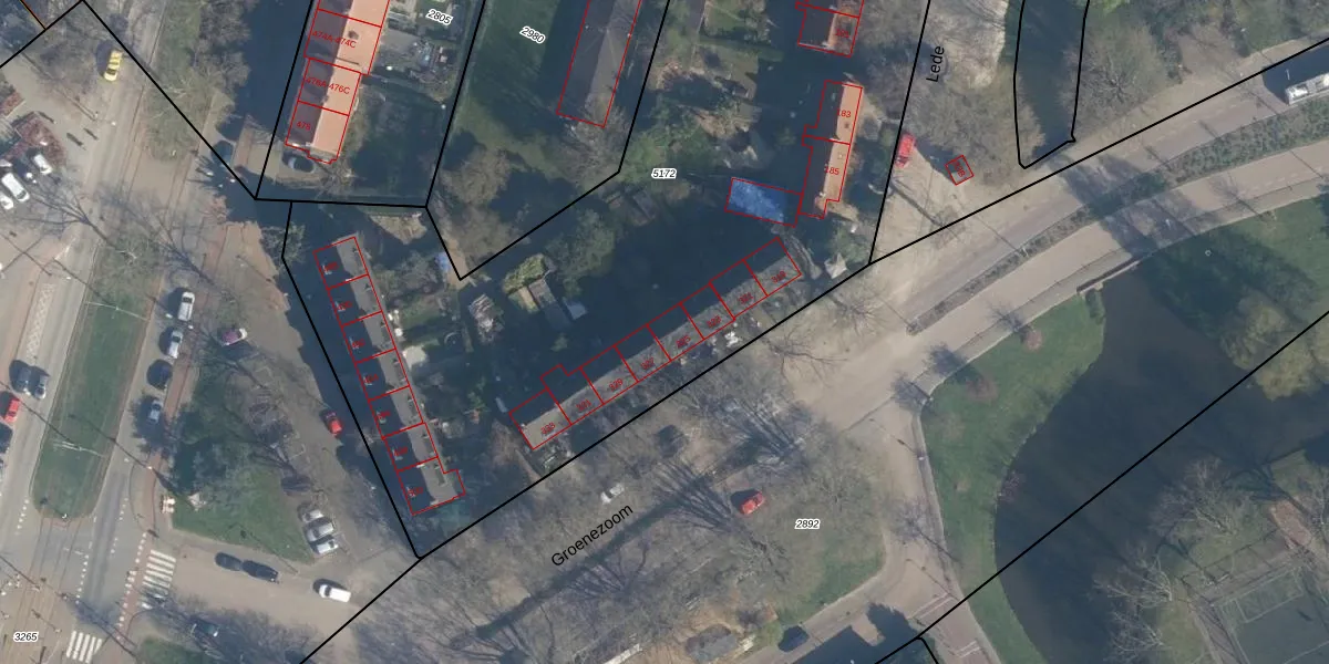 Het perceel waarop Groenezoom 325 staat heeft een oppervlakte van 5016 m². Dit is een zeer groot perceel. De perceeloppervlakte wordt geregistreerd door het Kadaster. Gedetailleerde informatie over de maten van dit perceel kunt u vinden in het rapport Kadastrale kaart met maatvoering van Groenezoom 325.