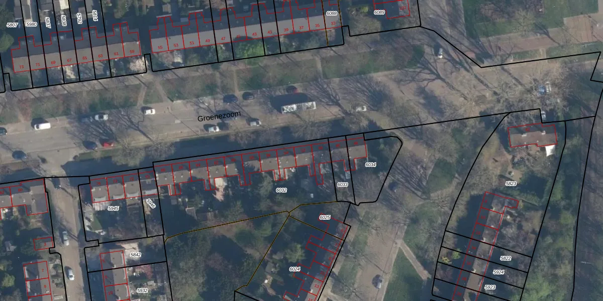 Groenezoom 52 is gelegen op kadastraal perceel RTD05V6032. Deze kadastrale aanduiding is uniek en wordt gebruikt door het Kadaster om eigendomsrechten en andere zakelijke rechten vast te leggen. Het perceel maakt onderdeel uit van de kadastrale gemeente Rotterdam.