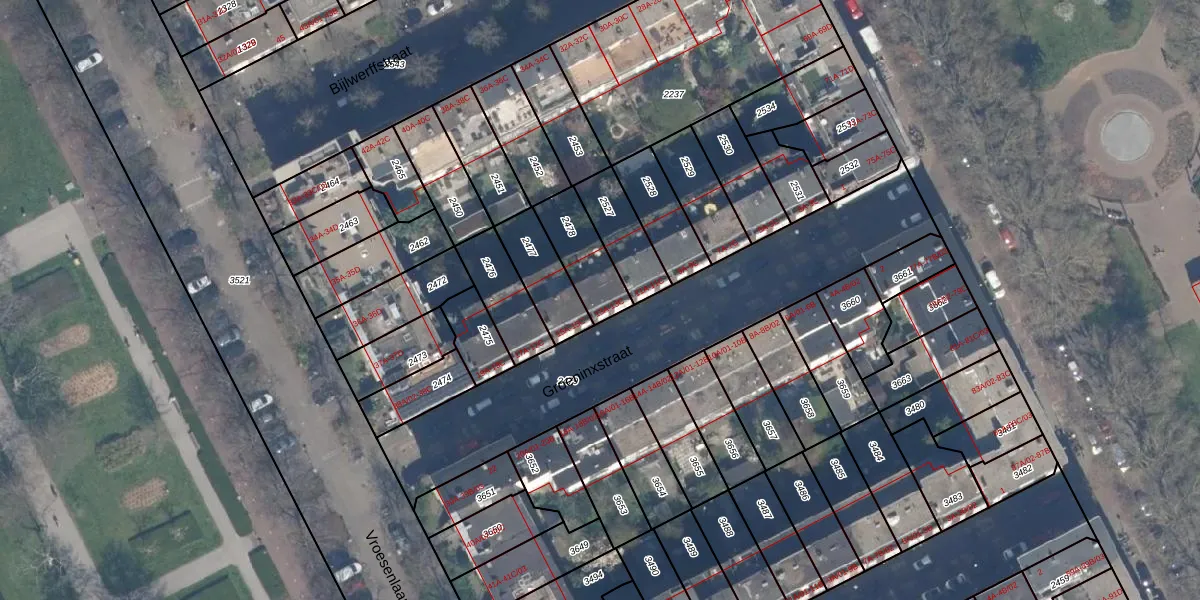 Het perceel waarop Groeninxstraat 13-B staat heeft een oppervlakte van 166 m². Dit is een middelgroot perceel. De perceeloppervlakte wordt geregistreerd door het Kadaster. Gedetailleerde informatie over de maten van dit perceel kunt u vinden in het rapport Kadastrale kaart met maatvoering van Groeninxstraat 13-B.