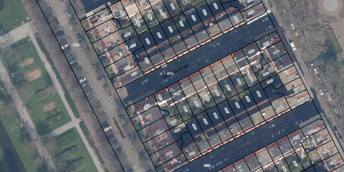 Het perceel waarop Groeninxstraat 18-A staat heeft een oppervlakte van 158 m². Dit is een middelgroot perceel. De perceeloppervlakte wordt geregistreerd door het Kadaster. Gedetailleerde informatie over de maten van dit perceel kunt u vinden in het rapport Kadastrale kaart met maatvoering van Groeninxstraat 18-A.