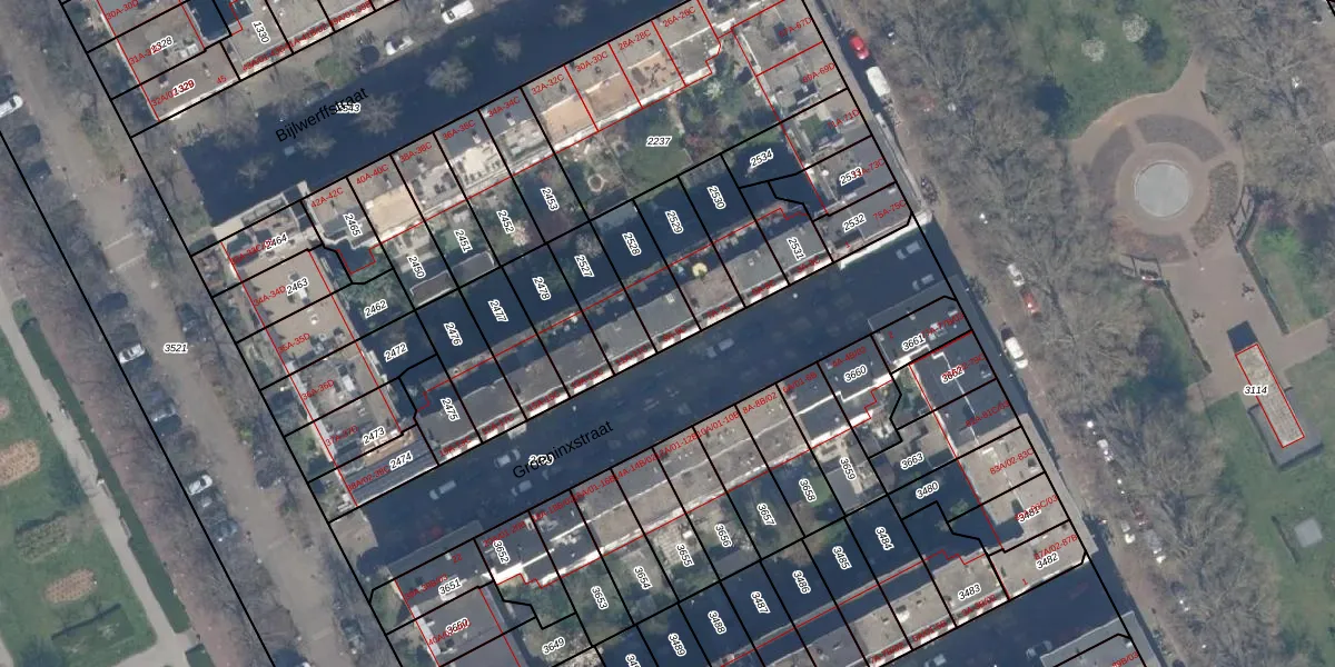 Het perceel waarop Groeninxstraat 9-A staat heeft een oppervlakte van 166 m². Dit is een middelgroot perceel. De perceeloppervlakte wordt geregistreerd door het Kadaster. Gedetailleerde informatie over de maten van dit perceel kunt u vinden in het rapport Kadastrale kaart met maatvoering van Groeninxstraat 9-A.