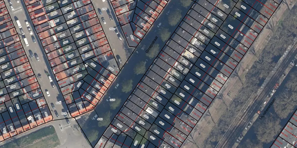 Groepstraat 100 is gelegen op kadastraal perceel CLS00G2398. Deze kadastrale aanduiding is uniek en wordt gebruikt door het Kadaster om eigendomsrechten en andere zakelijke rechten vast te leggen. Het perceel maakt onderdeel uit van de kadastrale gemeente Charlois.
