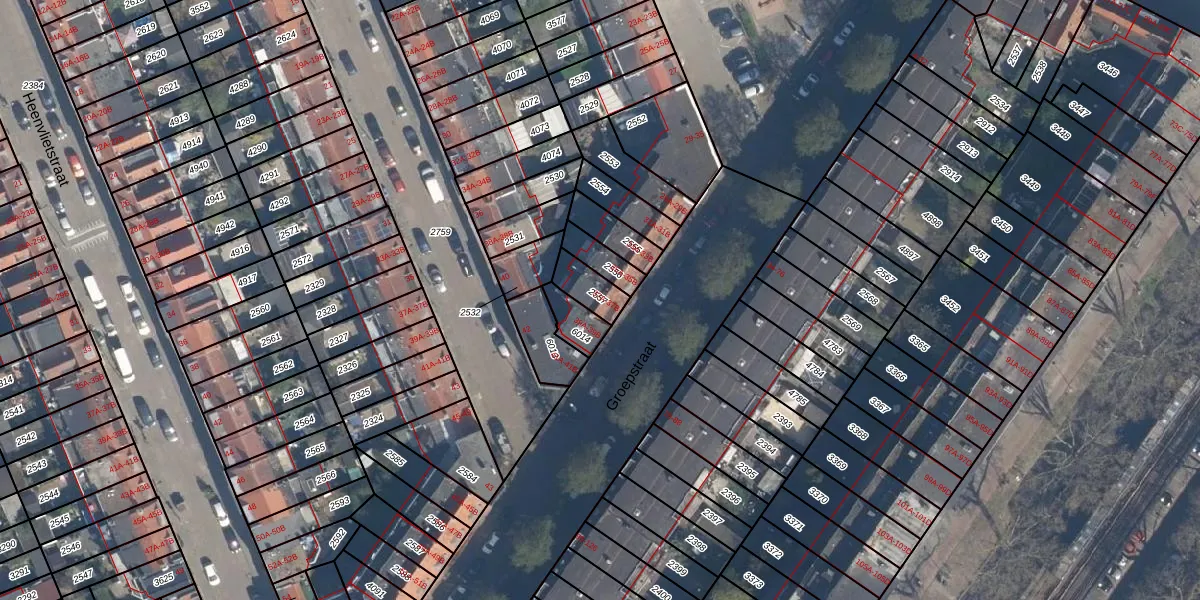 Groepstraat 37-B is gelegen op kadastraal perceel CLS00G2557. Deze kadastrale aanduiding is uniek en wordt gebruikt door het Kadaster om eigendomsrechten en andere zakelijke rechten vast te leggen. Het perceel maakt onderdeel uit van de kadastrale gemeente Charlois.