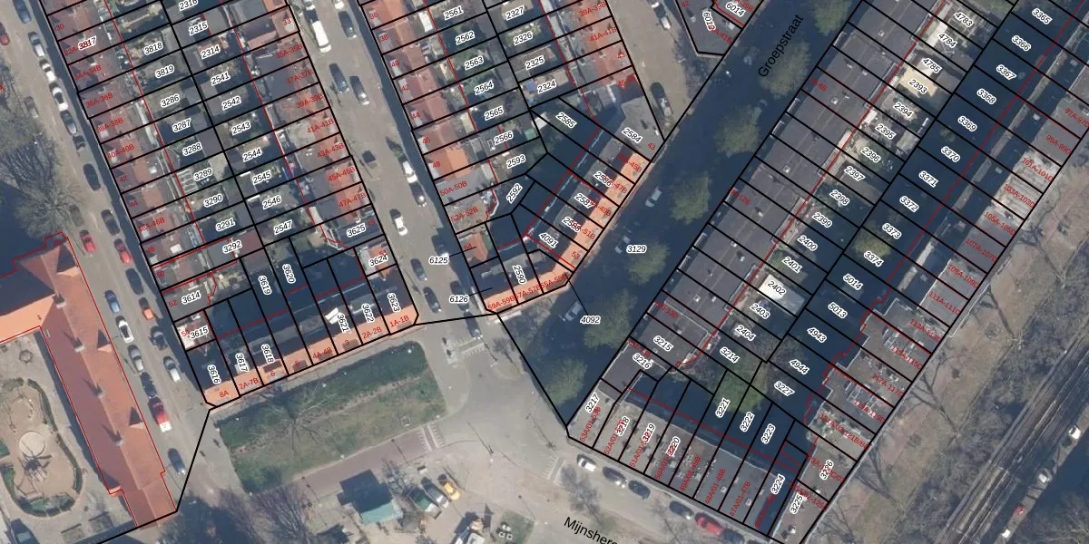 Groepstraat 55-A is gelegen op kadastraal perceel CLS00G4092. Deze kadastrale aanduiding is uniek en wordt gebruikt door het Kadaster om eigendomsrechten en andere zakelijke rechten vast te leggen. Het perceel maakt onderdeel uit van de kadastrale gemeente Charlois.