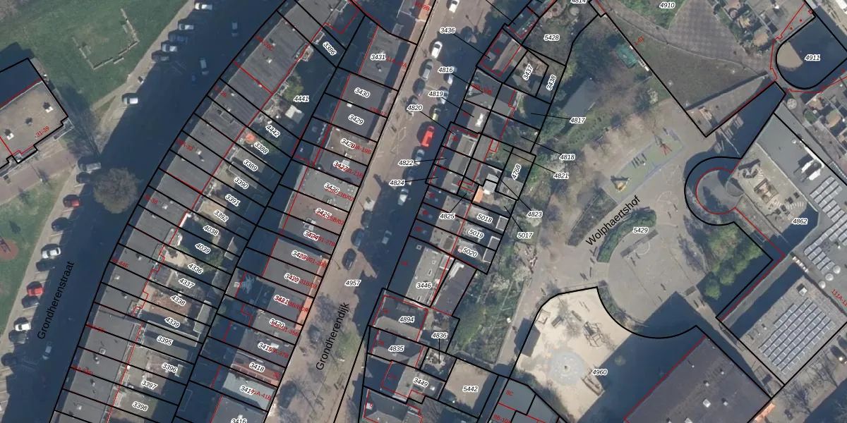 Grondherendijk 44 is gelegen op kadastraal perceel CLS00E5019. Deze kadastrale aanduiding is uniek en wordt gebruikt door het Kadaster om eigendomsrechten en andere zakelijke rechten vast te leggen. Het perceel maakt onderdeel uit van de kadastrale gemeente Charlois.