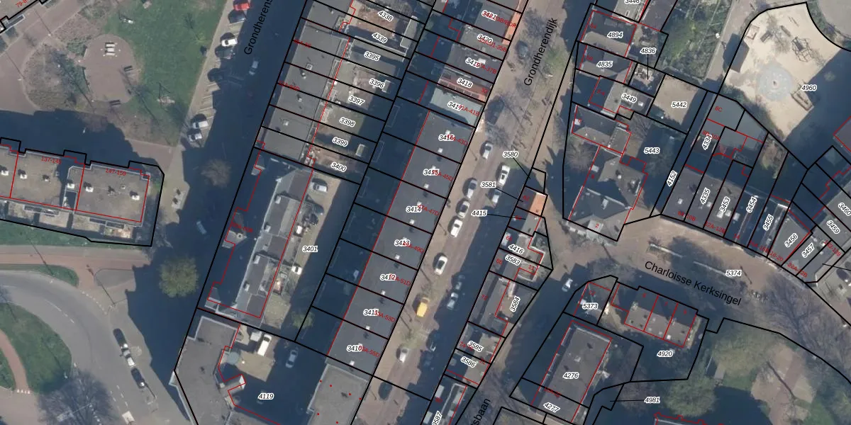 Grondherendijk 47-A is gelegen op kadastraal perceel CLS00E3414. Deze kadastrale aanduiding is uniek en wordt gebruikt door het Kadaster om eigendomsrechten en andere zakelijke rechten vast te leggen. Het perceel maakt onderdeel uit van de kadastrale gemeente Charlois.