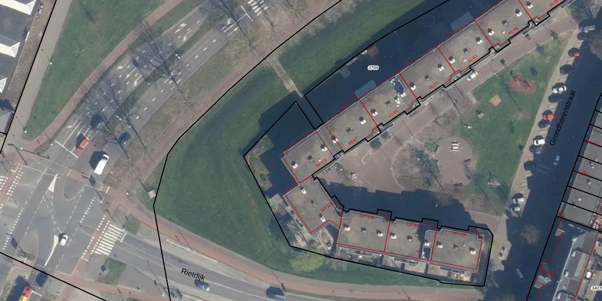 Grondherenstraat 99 is gelegen op kadastraal perceel CLS00A3799. Deze kadastrale aanduiding is uniek en wordt gebruikt door het Kadaster om eigendomsrechten en andere zakelijke rechten vast te leggen. Het perceel maakt onderdeel uit van de kadastrale gemeente Charlois.