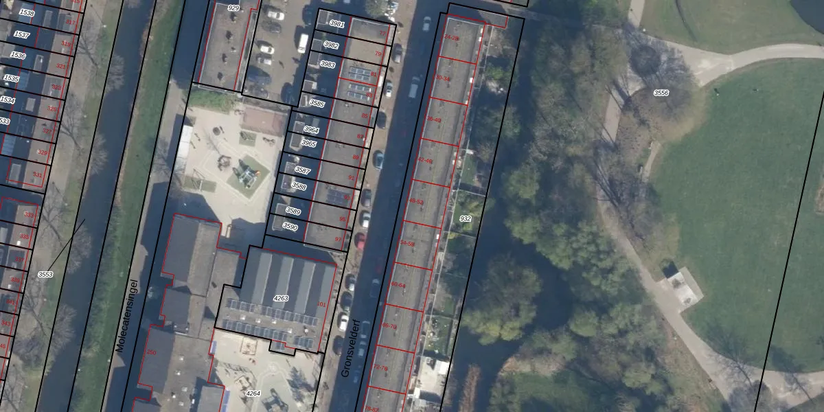 Het perceel waarop Gronsvelderf 52 staat heeft een oppervlakte van 3068 m². Dit is een zeer groot perceel. De perceeloppervlakte wordt geregistreerd door het Kadaster. Gedetailleerde informatie over de maten van dit perceel kunt u vinden in het rapport Kadastrale kaart met maatvoering van Gronsvelderf 52.