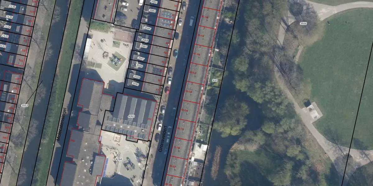 Het perceel waarop Gronsvelderf 56 staat heeft een oppervlakte van 3068 m². Dit is een zeer groot perceel. De perceeloppervlakte wordt geregistreerd door het Kadaster. Gedetailleerde informatie over de maten van dit perceel kunt u vinden in het rapport Kadastrale kaart met maatvoering van Gronsvelderf 56.