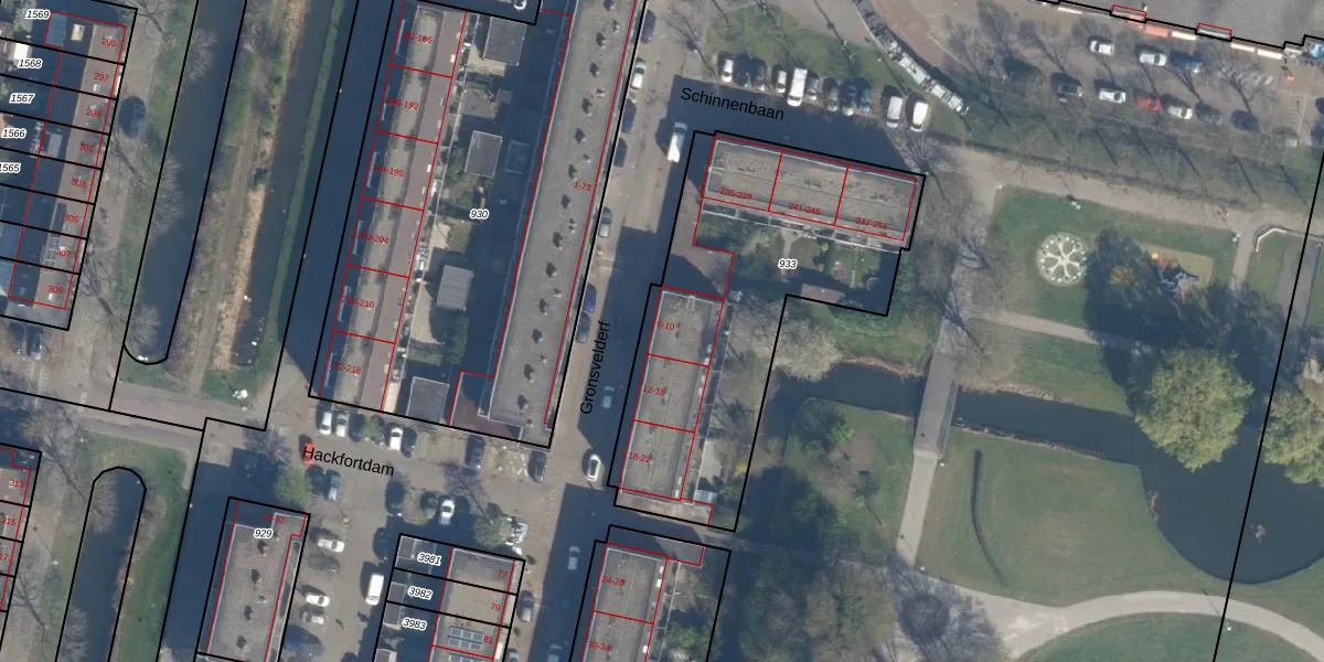 Gronsvelderf 6 is gelegen op kadastraal perceel ISM01F933. Deze kadastrale aanduiding is uniek en wordt gebruikt door het Kadaster om eigendomsrechten en andere zakelijke rechten vast te leggen. Het perceel maakt onderdeel uit van de kadastrale gemeente IJsselmonde.