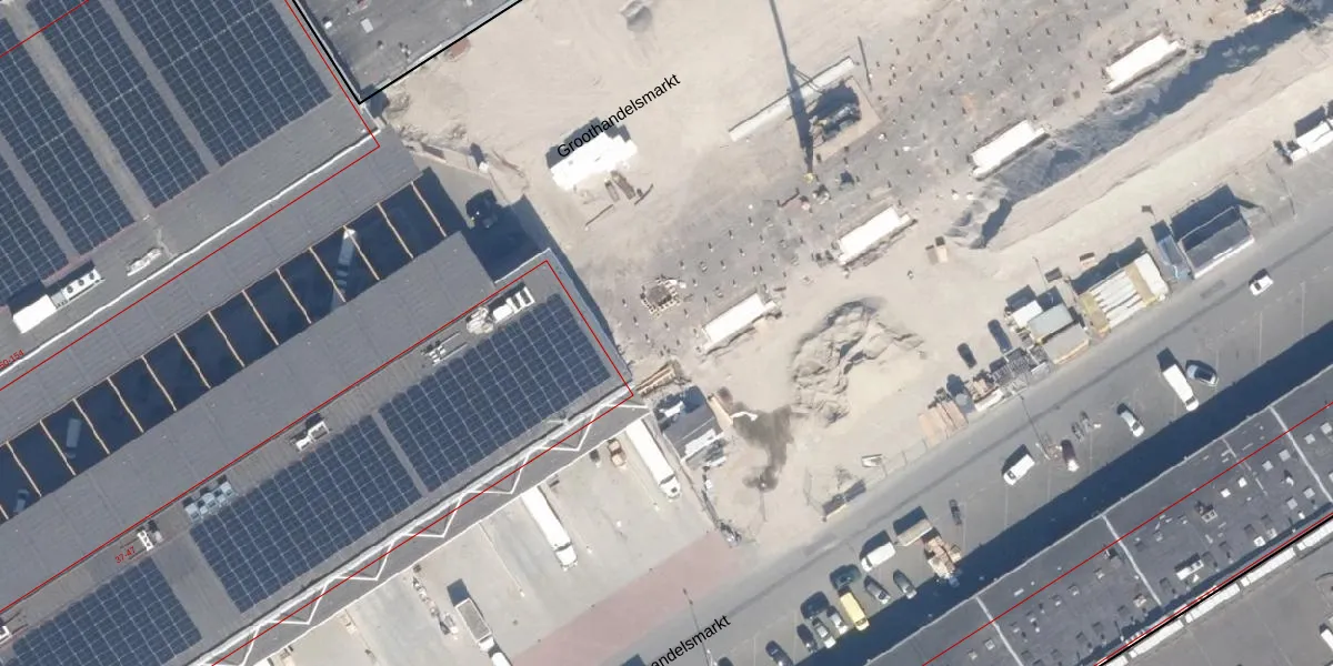 Het perceel waarop Groothandelsmarkt 48 staat heeft een oppervlakte van 7,4 ha. Dit is een zeer groot perceel. De perceeloppervlakte wordt geregistreerd door het Kadaster. Gedetailleerde informatie over de maten van dit perceel kunt u vinden in het rapport Kadastrale kaart met maatvoering van Groothandelsmarkt 48.